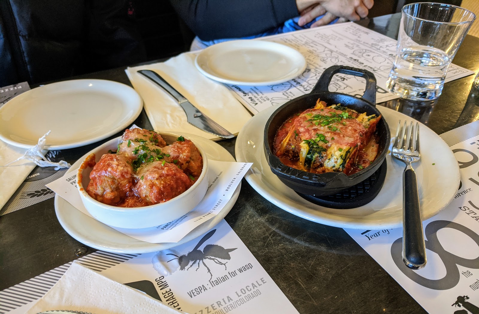 | Small meatballs and the world's tiniest "shareable" lasagna (Pizzeria Locale). |